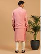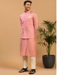 Step into a world of elegance and charm with this regal attire (Cotton Blend Stripe Pattern Sequins Work Pink Kurta and Jacket paired flawlessly with Viscose Pant Style Cream Pajama). This ensemble encapsulates enchanting beauty and contemporary flair. The Cotton Blend Kurta, adorned with delicate sequins, boasts a mesmerising stripe pattern that dances with every step. Its gentle pink hue exudes grace and charm. The accompanying jacket adds a layer of sophistication, enhancing your allure. The Viscose Pant Style “Cream Pajama” provides comfort and complements the ensemble with its subtle cream hue. A fusion of tradition and modernity, this outfit is your gateway to enchantment.