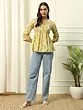 This top features thoughtful design elements that elevate its overall appeal. The three-quarter sleeves are perfect for transitioning between seasons and provide just the right amount of coverage. Delicate trim along the neckline and sleeve cuffs adds a subtle pop of color and texture, enhancing the top's unique character. The gathered empire waist creates a flattering shape that flows gently over the body, providing a comfortable and flattering fit.