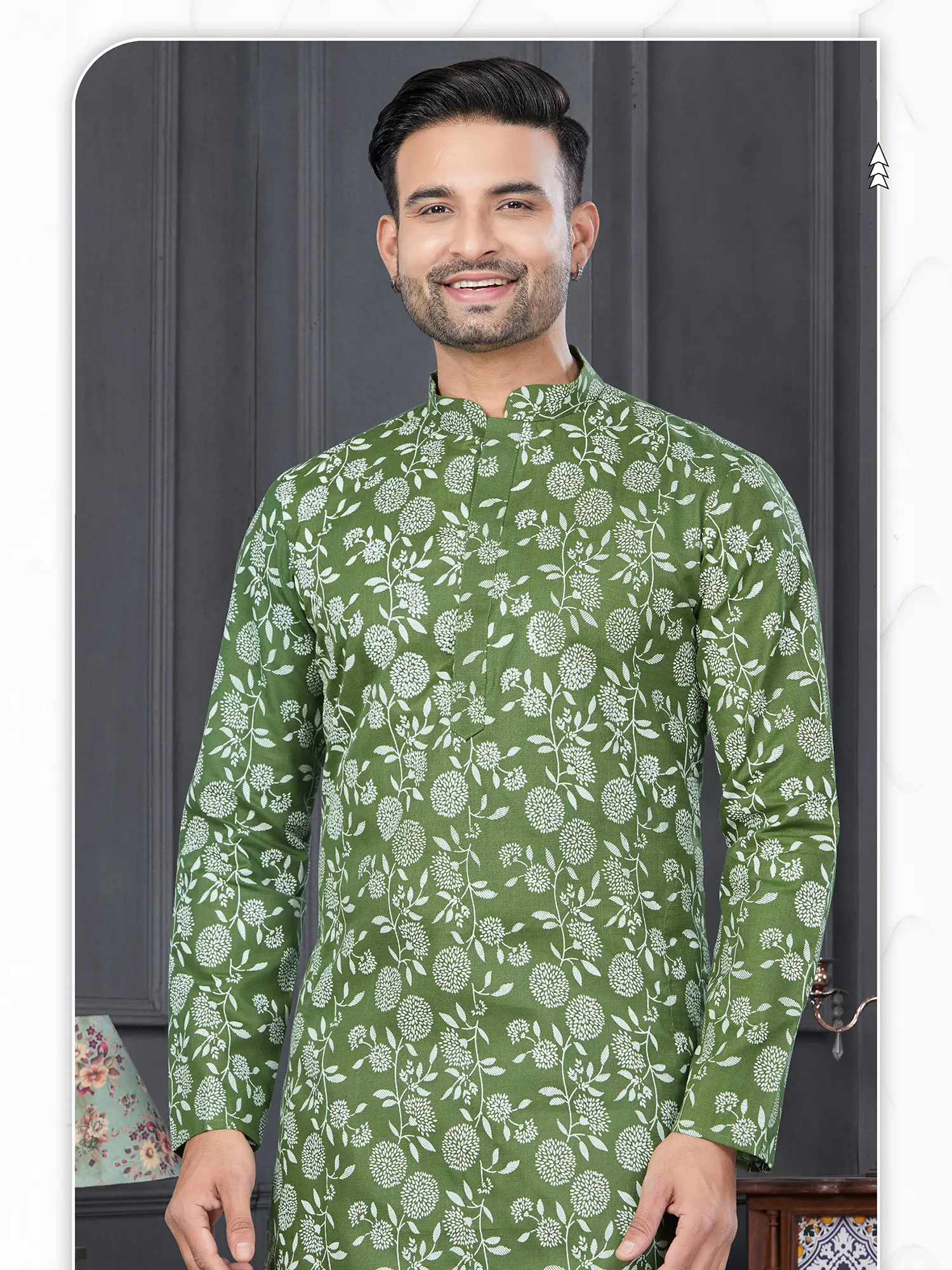 Pure Cotton Floral Printed Casual Kurta Pajama Set