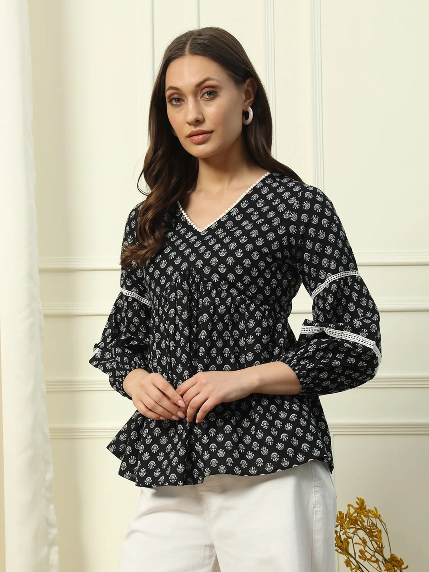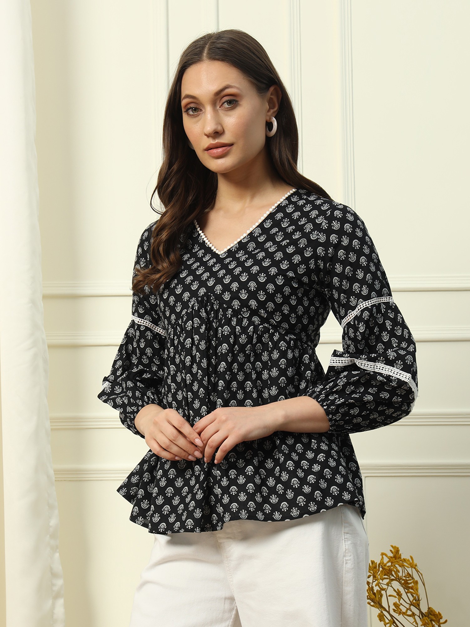 Lot of Three Block-Printed Collared Women Kurti Tops from Pilkhuwa