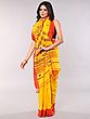 Empire-Yellow Cotton Saree from Bengal with Silver Zari Thread woven Border and Stripe Pallu
