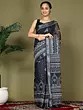 The true charm of this saree lies in its captivating traditional woven pattern. Intricate motifs adorn the fabric, showcasing a rich heritage of textile artistry. The detailed patterns are rendered in a striking contrast against the deep, classic base, creating a visual appeal that is both sophisticated and eye-catching. The meticulous weaving process ensures that each motif is sharply defined, reflecting the dedication and skill of the artisans. This traditional design adds a touch of heritage and cultural richness to your wardrobe, making each drape a statement of your refined taste.