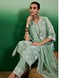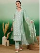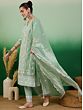 Thatch-Green Vichitra Silk Round Neck Floral Embroidery And Hand Work Kurta With Trouser & Dupatta