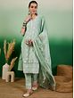 Cotton Schiffli Embroidery Mandarin Collar Kurta With Trouser & Dupatta