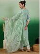 Dark-Teal Floral Embroidery And Hand Work Round Neck Vichitra Silk Festival Wear Kurta With Trouser & Dupatta