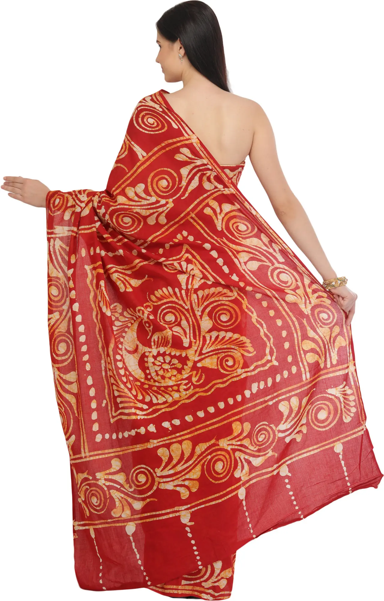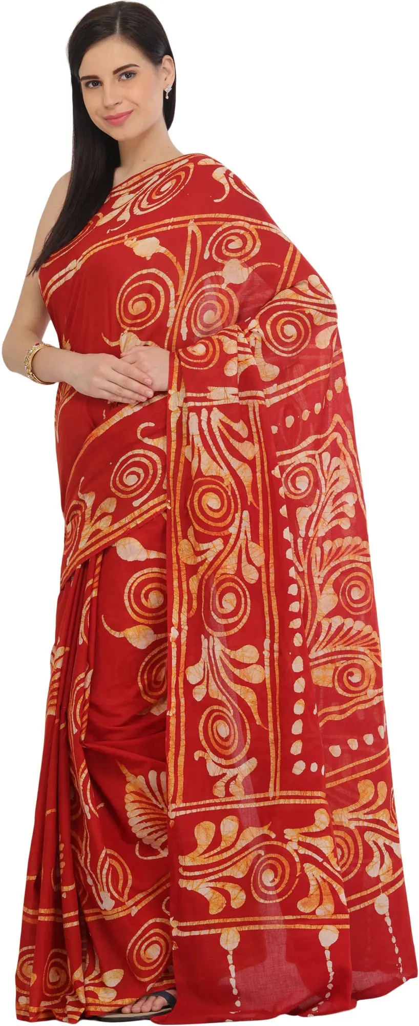 Batik-Dyed Tri-Colored Long Elastic Skirt