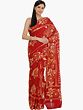 Blue-Curacao Digital-Printed Sari from Purvanchal with Woven Border