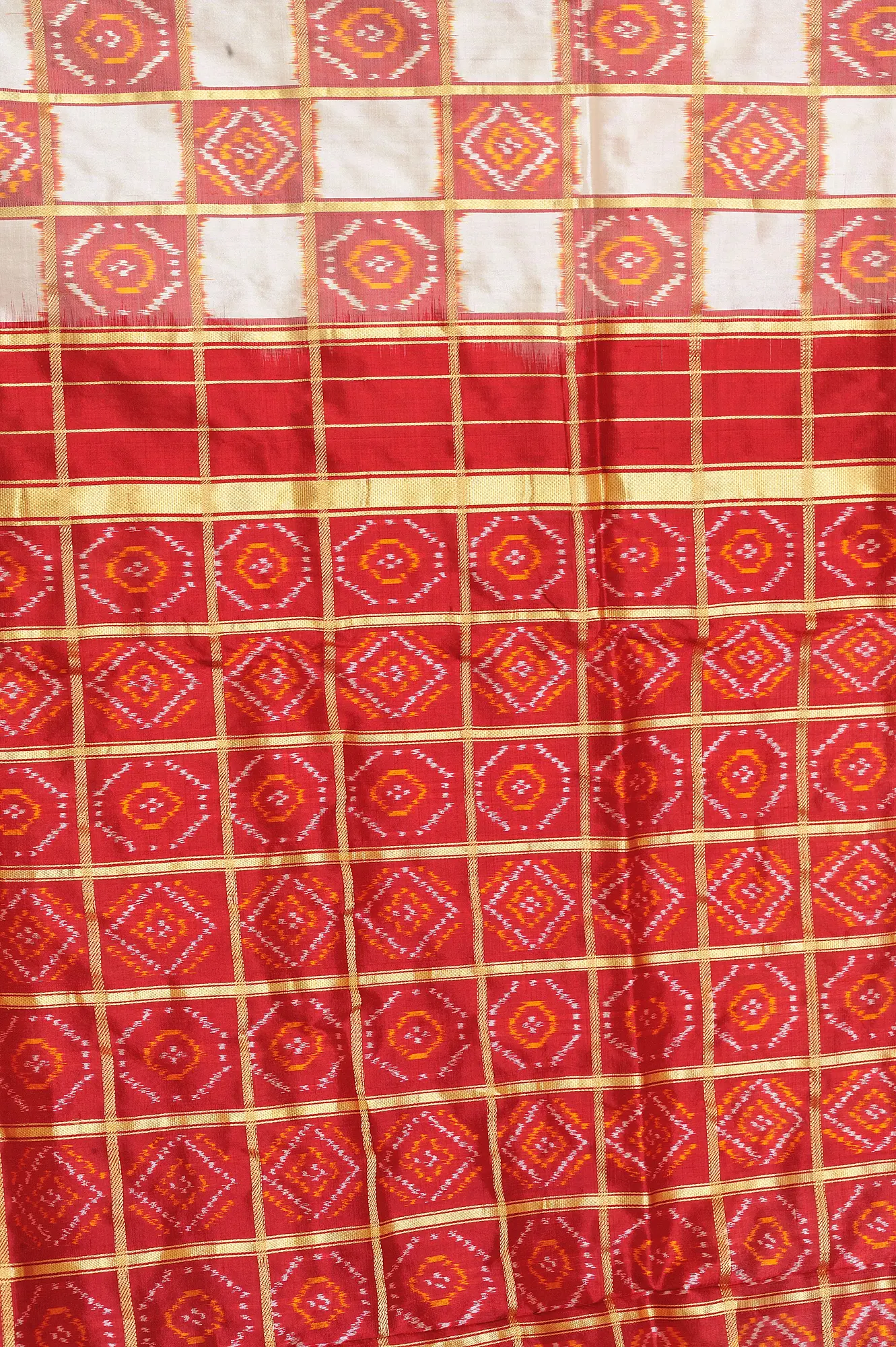 Beige Handloom Dupion Fabric from Pochampally with Ikat Weave