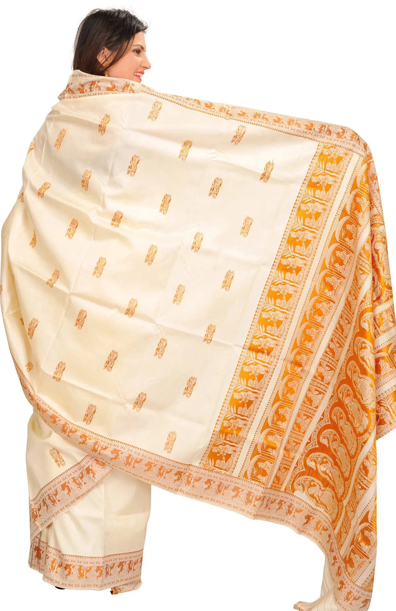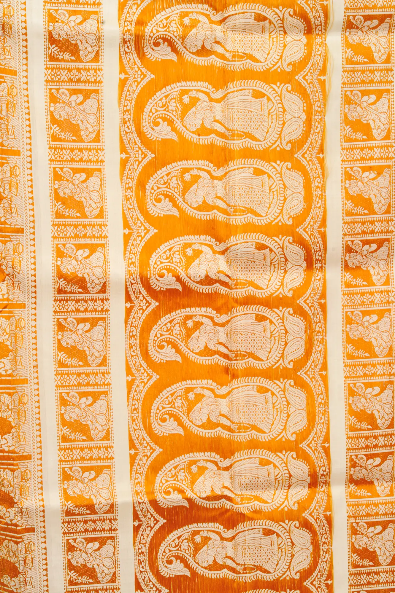 Cream Baluchari Sari from Kolkata Depicting Hindu Mythological Episodes