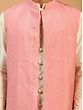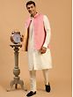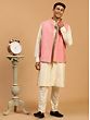 Find me a more exquisite combo than cream and pink, and I'll wait. This Cream Cotton Blend Front Open Kurta is haute couture, paired seamlessly with Viscose Pant Style Pajama adorned in a chic pinstripe pattern. Elevating the ensemble to ethereal heights is the exquisite Pink Jacket, a canvas of sequins that glimmers like stardust. This fusion of modernity and tradition creates a symphony of elegance, where comfort meets sophistication. The jacket's graceful hues cascade over the cream canvas, weaving a tapestry of style. Immerse yourself in the luxurious embrace of this ensemble, a testament to contemporary fashion with a touch of timeless allure.