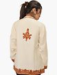 With the gorgeous “Aari hand embroidery” adorning its borders, this cream jacket will envelop you in the eternal enchantment of Kashmir. This wool jacket is the embodiment of Kashmiri artistry, where each delicate stitch tells a narrative of heritage and beauty.