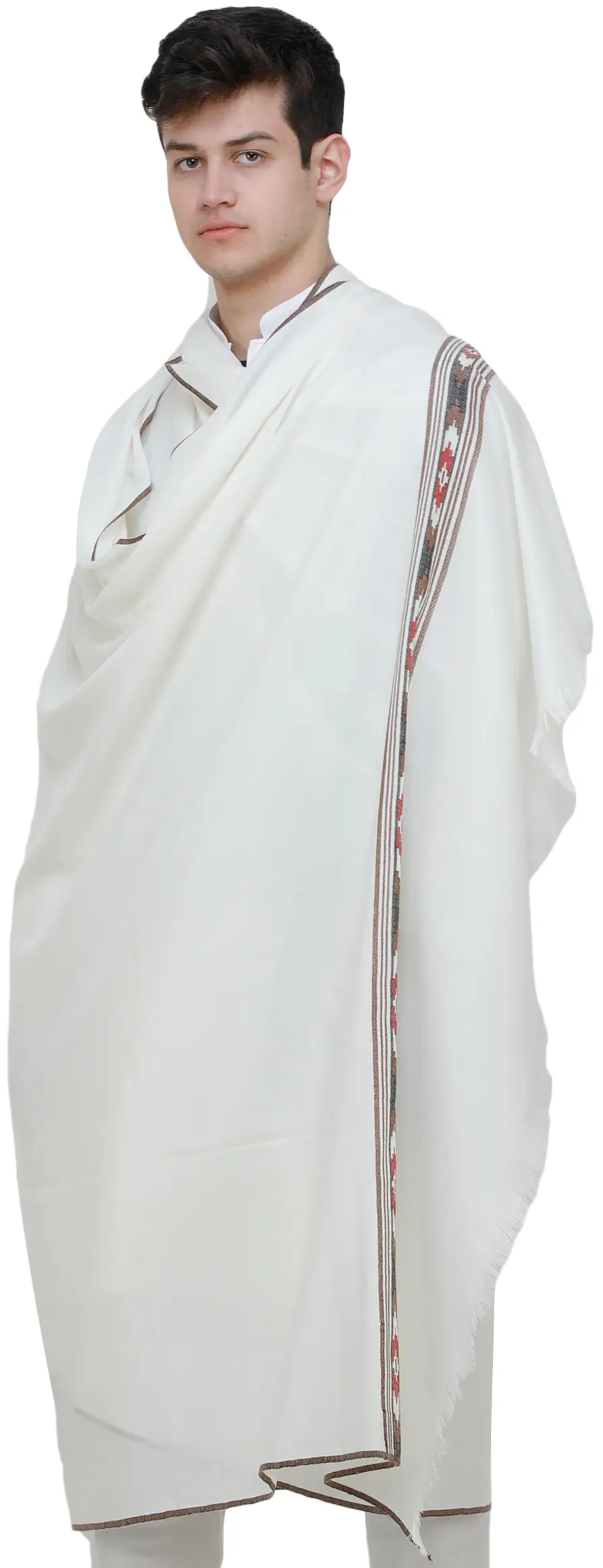 Handspun Men's Dushala Shawl (Lohi) from Kullu with Embroidered Border