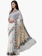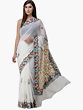 Star-White Saree from Kashmir with Aari Embroidered Jungle Scene in Multicolor Thread