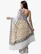 Cream Sari from Kashmir with Aari-Embroidered Multicolor Flowers
