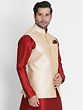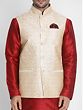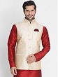 Crystal-Rose Art Silk Ethnic Nehru Jacket Waistcoat with Multicolor Floral Silk Embroidery and Sequin Work