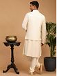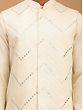 Cream Viscose Asymmetric Kurta Pajama Set with Mirror Embroidered Chevron Pattern Jacket