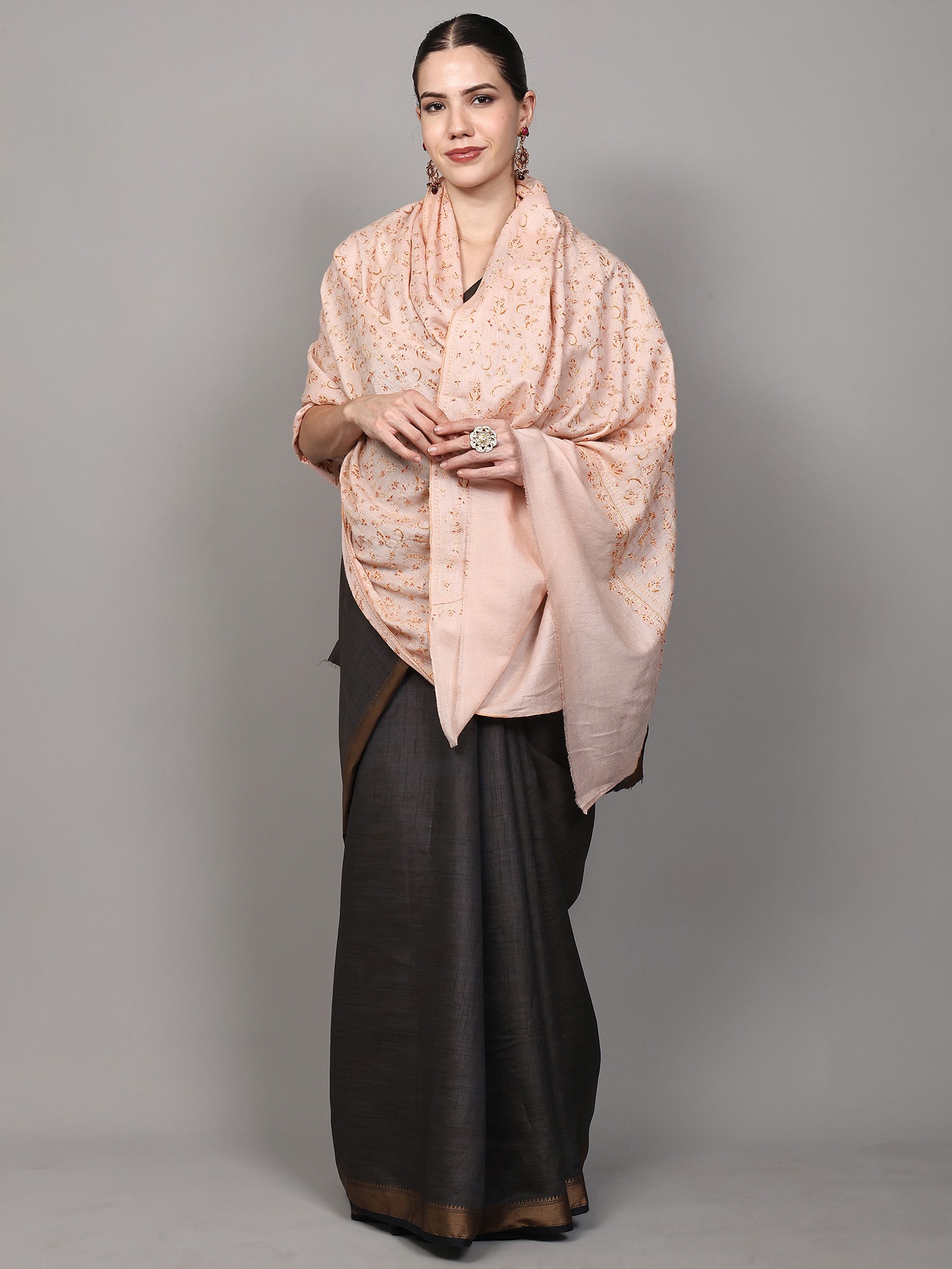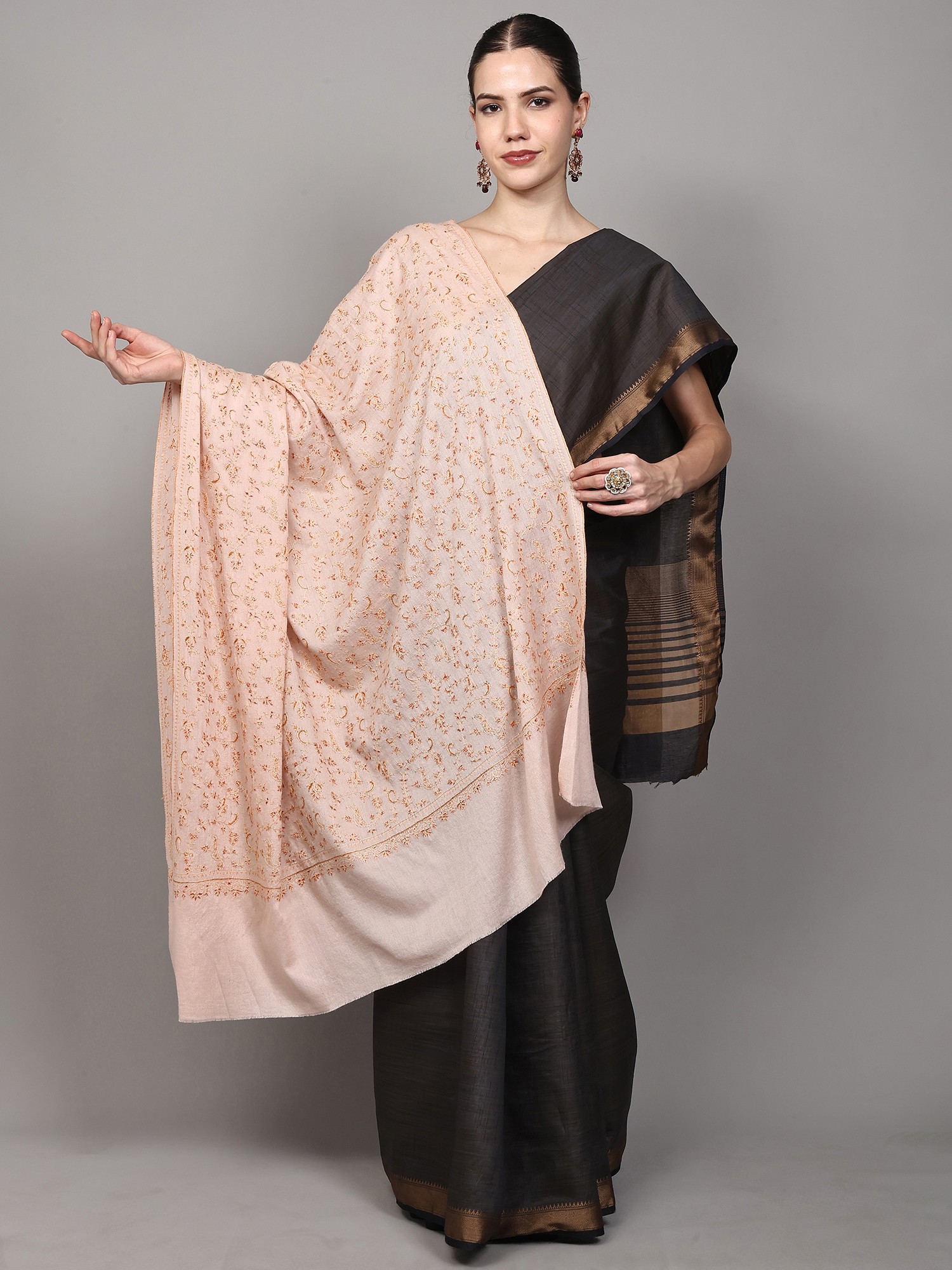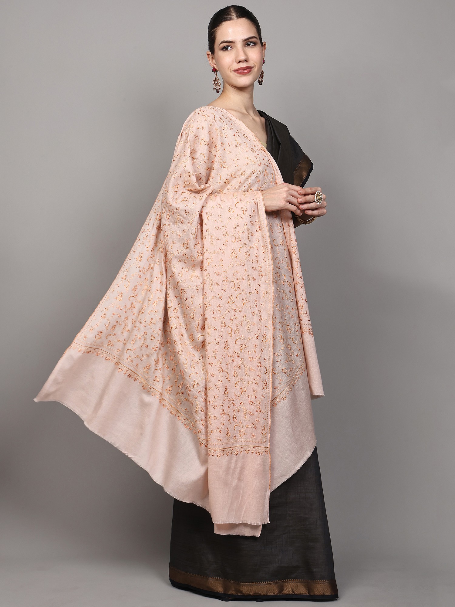 Pure Wool Shawl from Kashmir with Jaaldar Sozni Embroidery by Hand