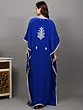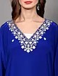 Immerse yourself in the opulent elegance of this breathtaking Crepe Long Kaftan, a true testament to the artistry of Kashmiri craftsmanship. Each stitch tells a story, woven with threads of tradition and modern sophistication. The vibrant royal blue hue of the crepe fabric drapes beautifully, offering a flattering silhouette that is both comfortable and undeniably chic. This kaftan is more than just an outfit; it's a wearable masterpiece designed to make you feel like royalty.