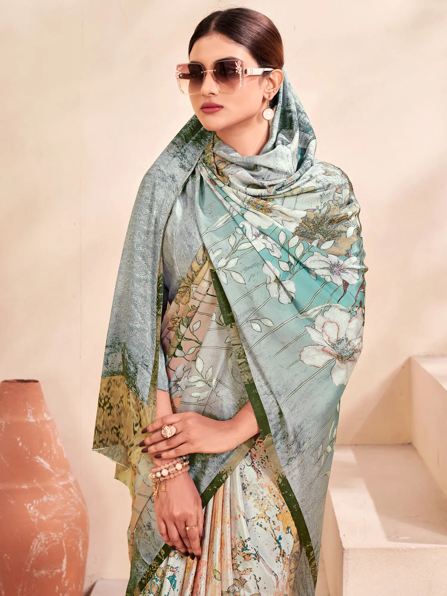 Soft Lichi Silk Floral Motifs Print Attractive Party Wear Saree With Blouse