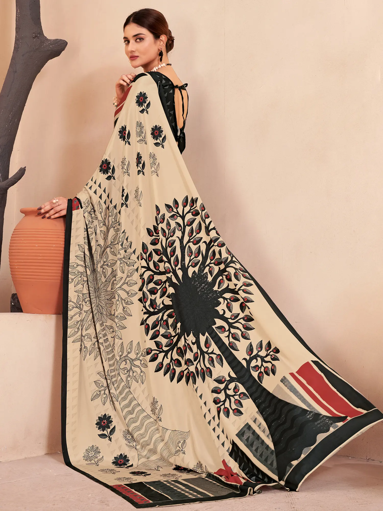 Peach-Pink Art Silk Saree with Zari Woven Lotus Border and Striped Pallu from Chennai