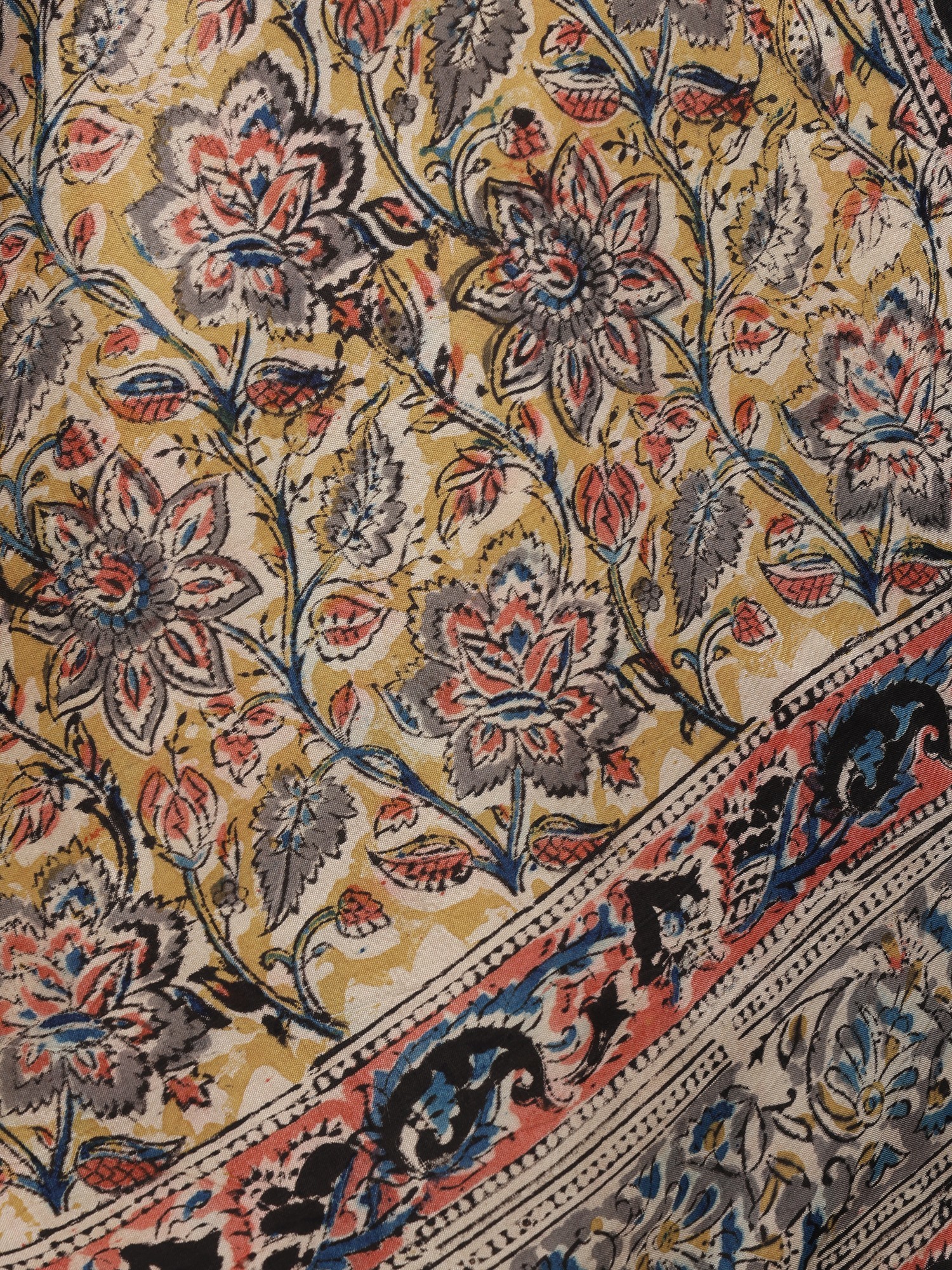 Kalamkari Dupatta from Telangana with Zari Border and Floral Print All-Over
