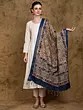 Black-Ink Floral Printed Kalamkari Dupatta from Telangana with Zari Woven Border and Dancing Apsaras
