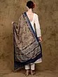 White-Swan Kalamkari Dupatta from Telangana with Block-Printed Flowers and Zari Border