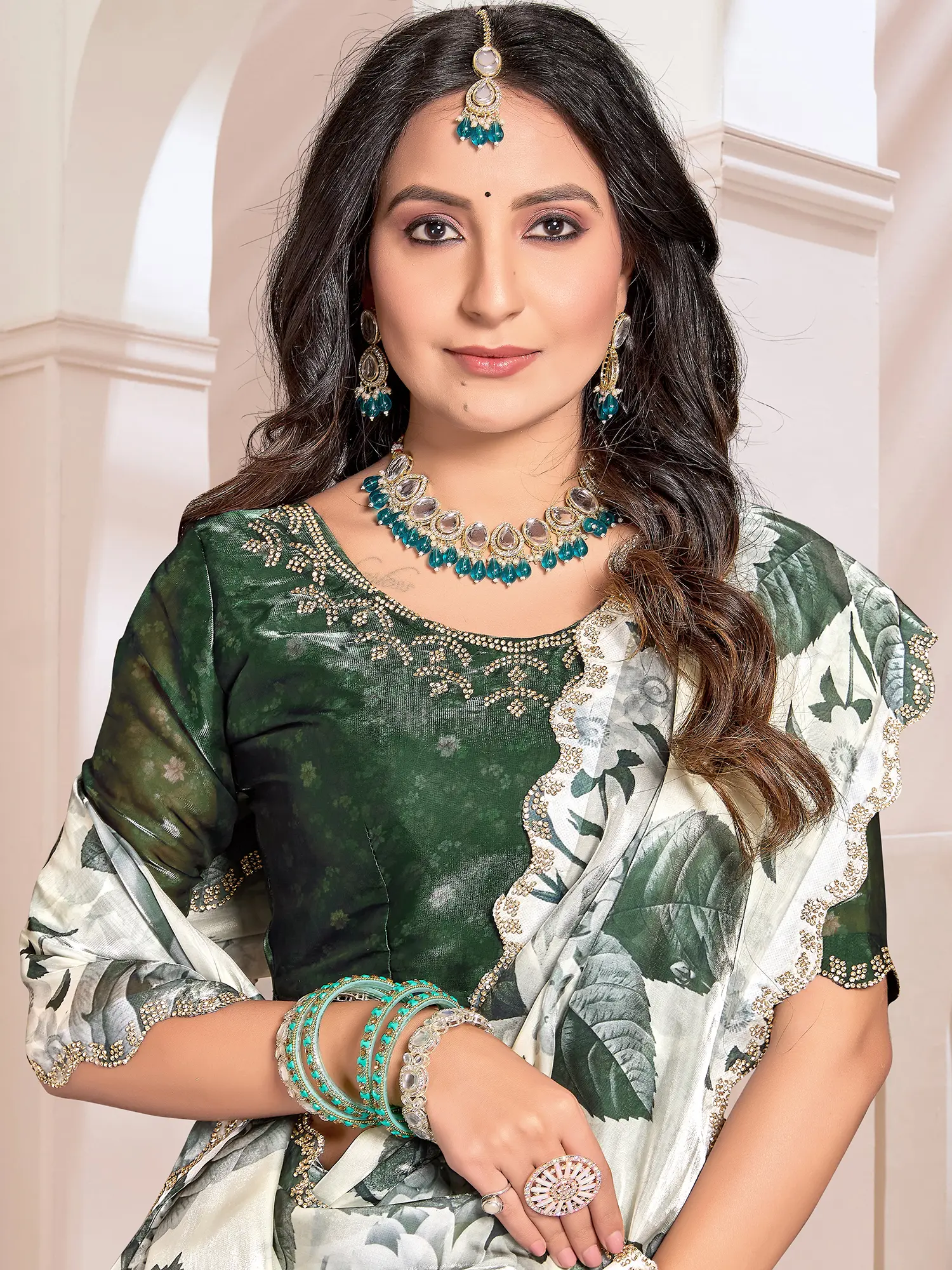 Sequins Embroidery Work with Floral Digital Print Organza Party Wear Saree