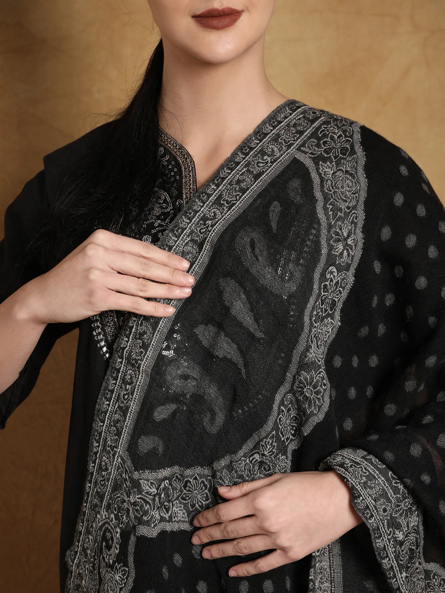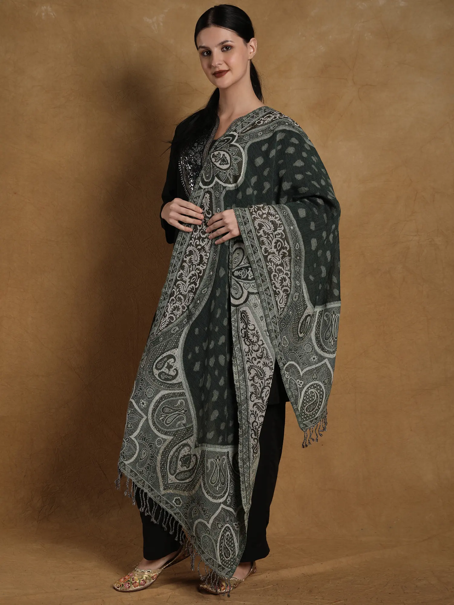 Cutwork jamawar stoles are the most beautiful shawls every lady loves to wear. If you want to get your hands on the right piece, we have got everything covered for you. This exclusive cutwork jamewar stole with woven paisleys and bootis all around it is enough to speak for its ornate artistry. Featuring the chocolate chip colour, this shawl is the way to go. A unique blend of natural beauty and elegance, this piece will elevate your look to a huge extent. Aside from chocolate chips, we have a vast collection of different colours available in it. You can shop for Cloudburst, Gray, Iron, French Blue, Jet Black and Swiss Green coloured stole available in the same design. No matter what your choice is, we have everything covered for you under one roof. Feel free to mix and match these shawls with your attires and get that perfect diva look for your day. Shop today!