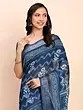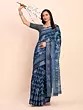 Mykonos-Blue Kantha Embroidered Crepe Saree with All-over Abstract Print and Sequins work