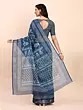 Dark-Teal Blue Abstract Print Handloom Woven Gaji Silk Saree with Tassels Pallu