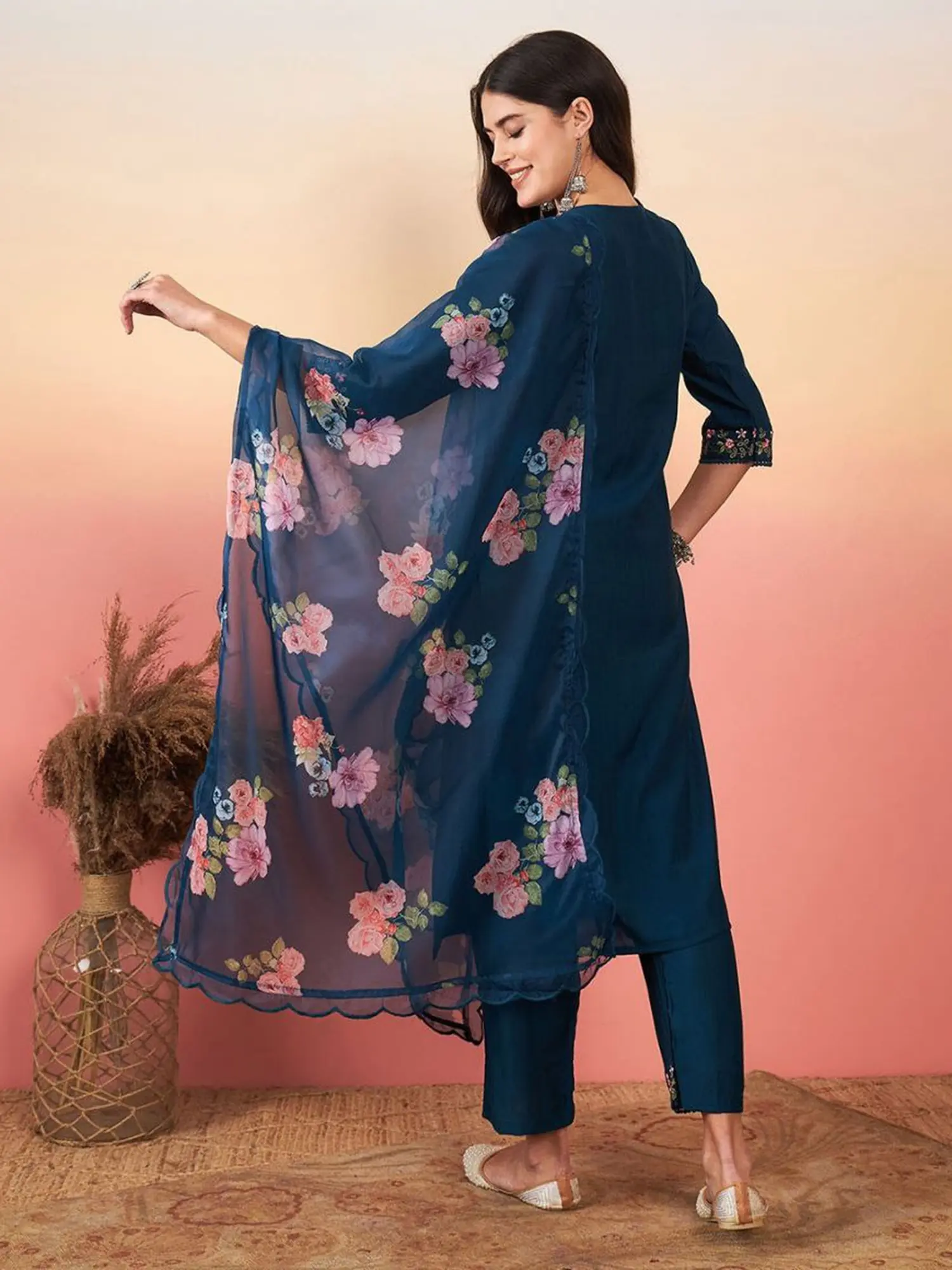 Sky-Blue Salwar Kameez with Floral Embroidery & Sequins – Elegant & Stylish Design