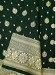 Dark-Green Banarasi Katan Silk Saree with Brocaded Zari Floral Butti All-Over