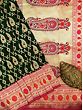 Dark-Green Katan Silk Paisley Vine Meena Butta Banarasi Saree and Paithani Pattern Border