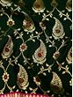 The insides of the paisleys are tinted with flowers in deep red and orange which contrast exquisitely with the green background.
