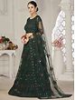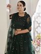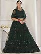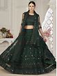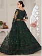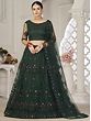 Dark-Green Mughal Motif Net Lehenga Choli with Thread-Mirror Embroidery and Matching Dupatta