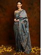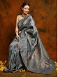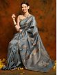 Dark Grey Art Silk Saree with Tree Buttas with Golden Detailed Threadwork Border and Palla