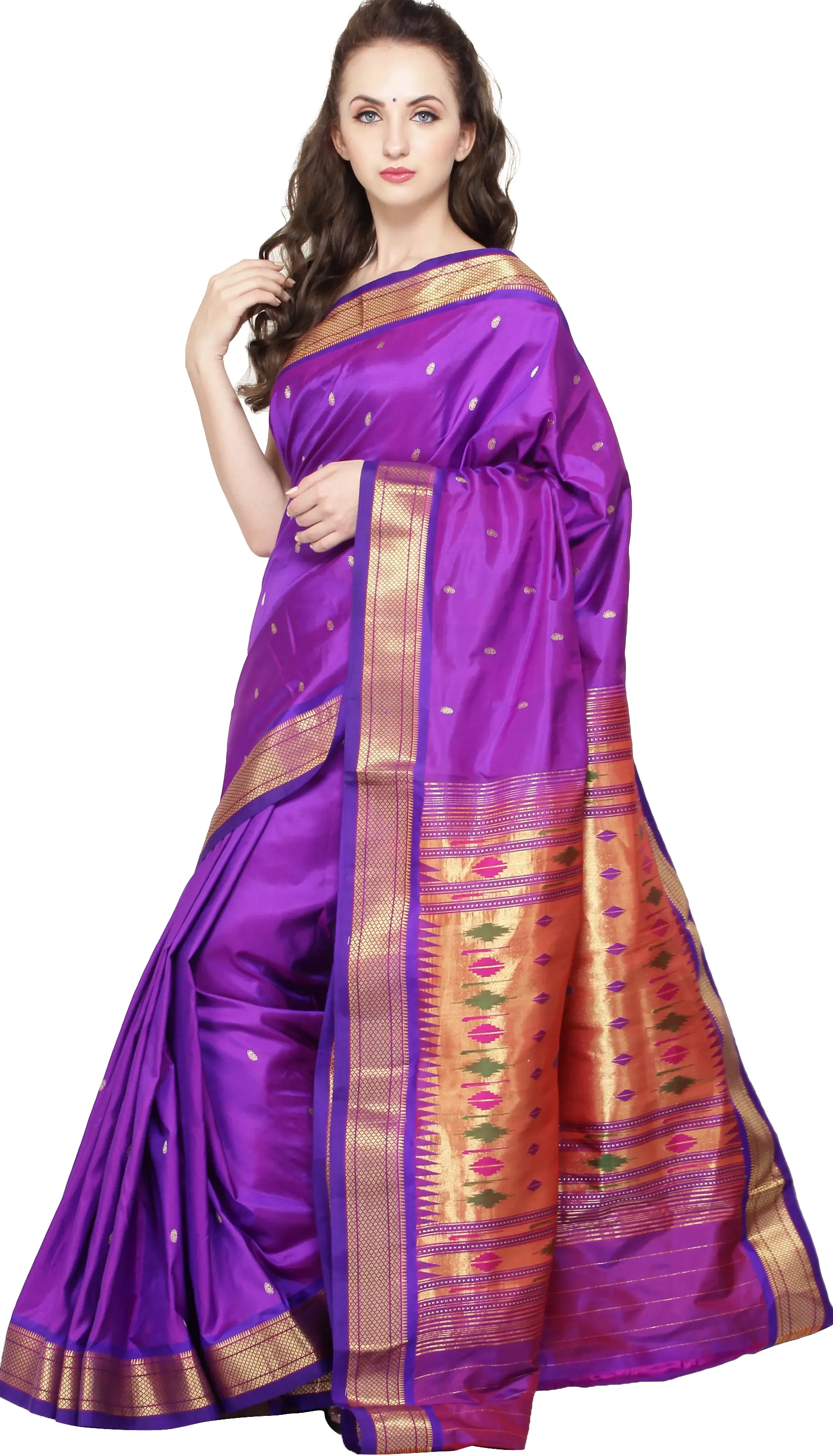 Royal-Purple Paithani Saree with Zari woven Paisley Bootis and Peacocks on Anchal