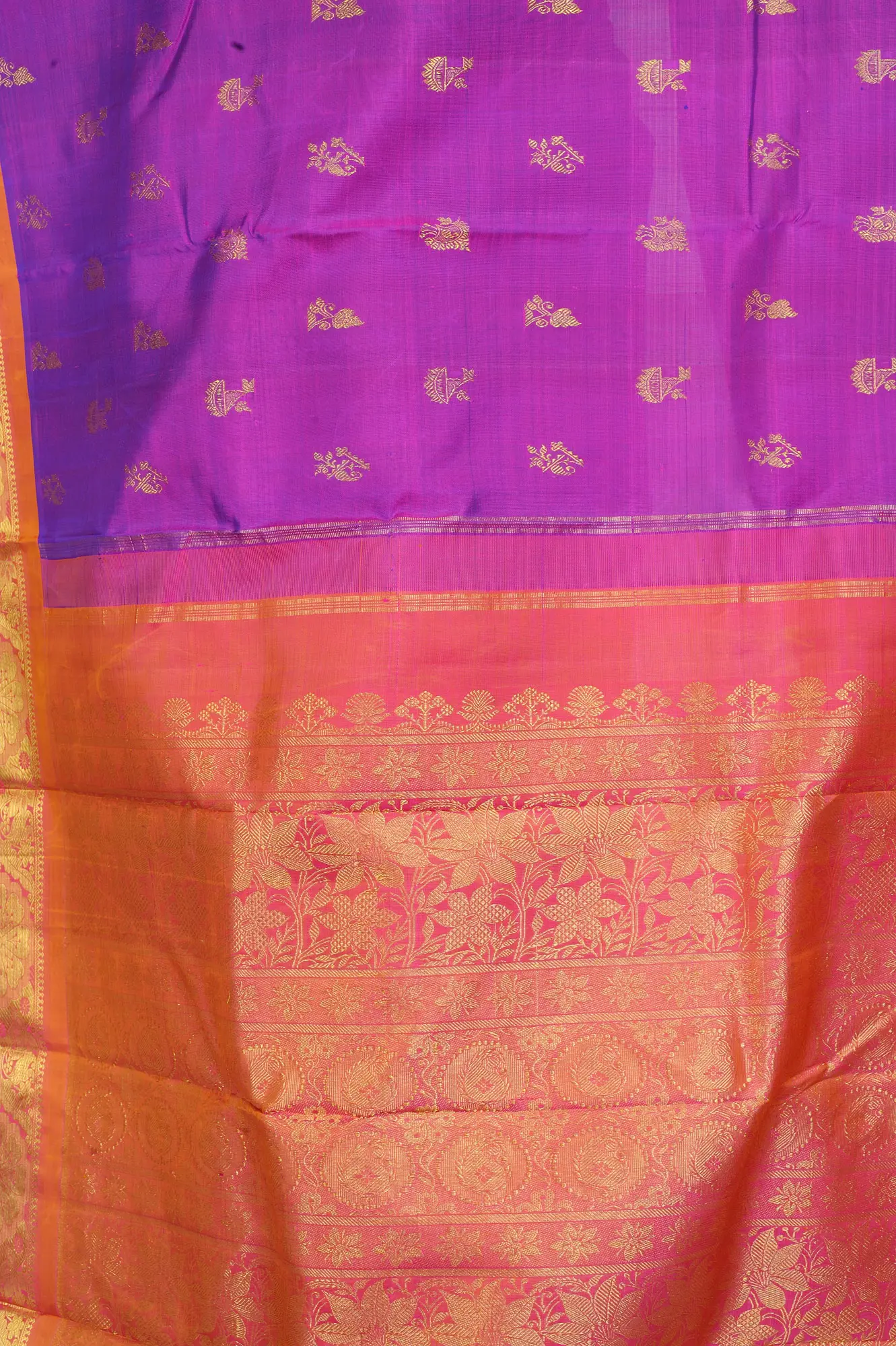 Apricot-Brandy Kanjivaram Saree from Bangalore with Wide Temple Border