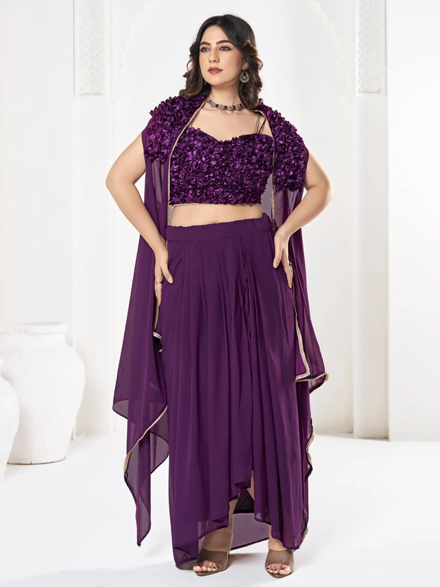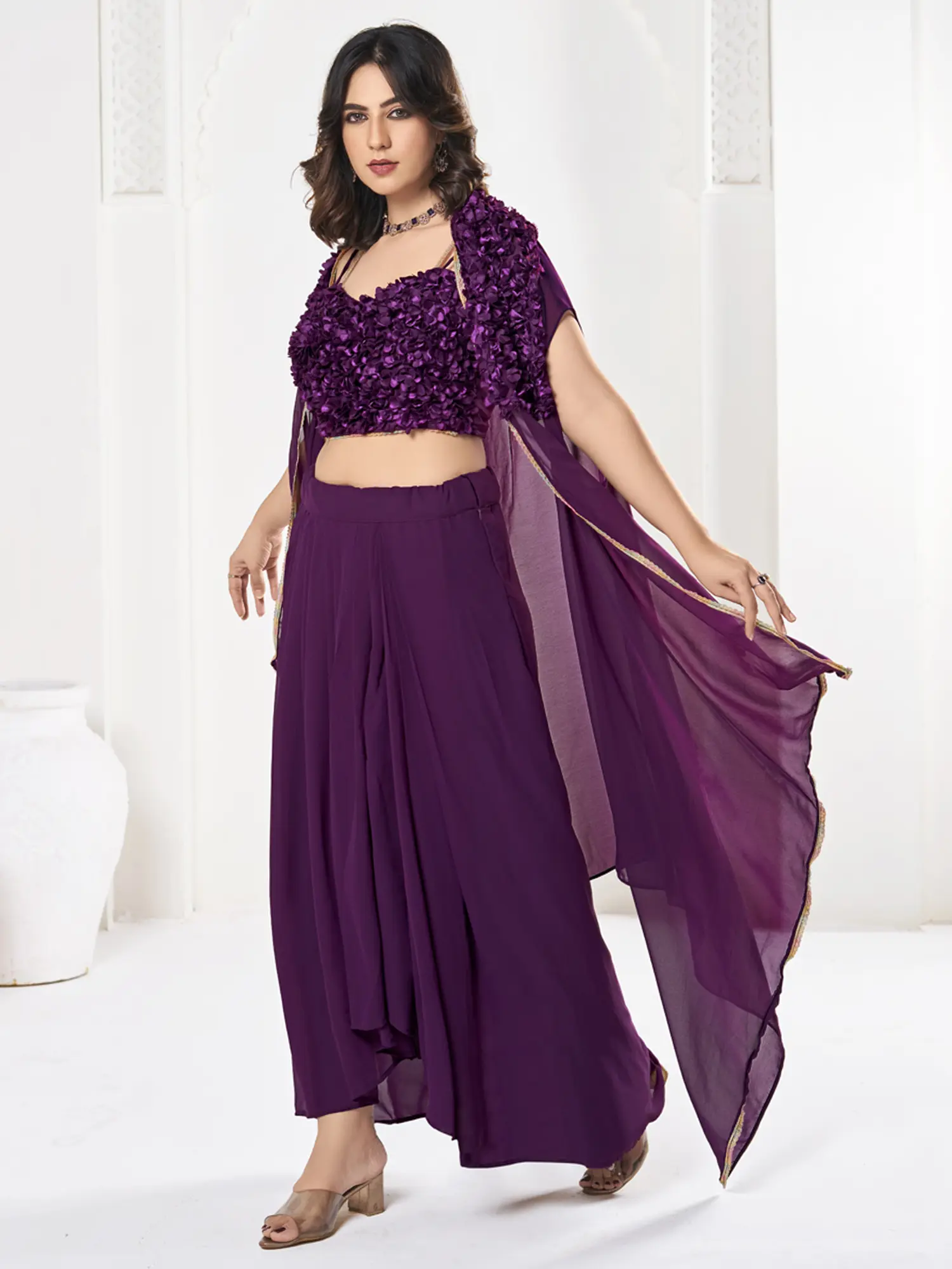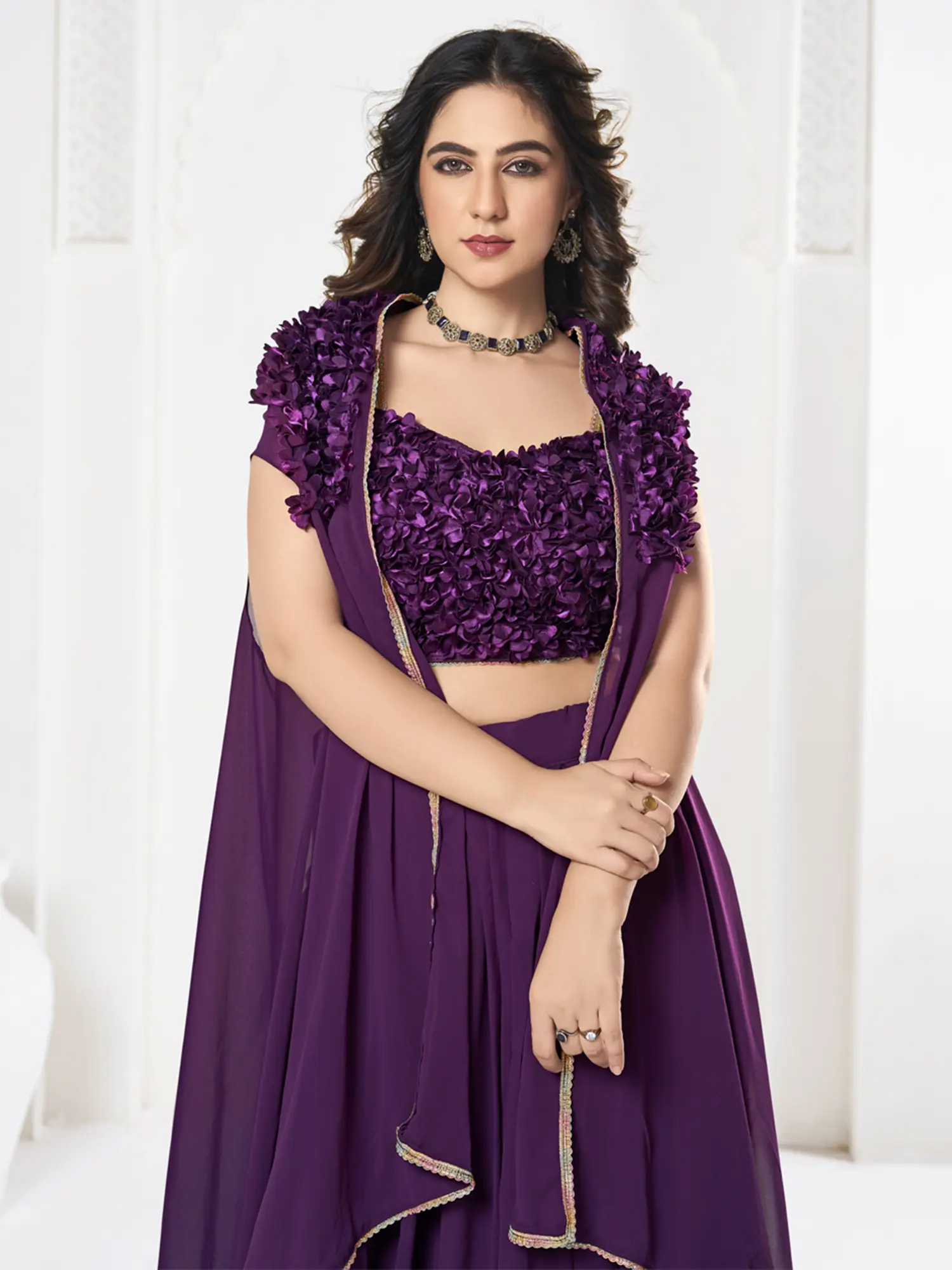 Designer Abstract Digital Print Georgette Party Wear Lehenga Choli With Matching Shrug