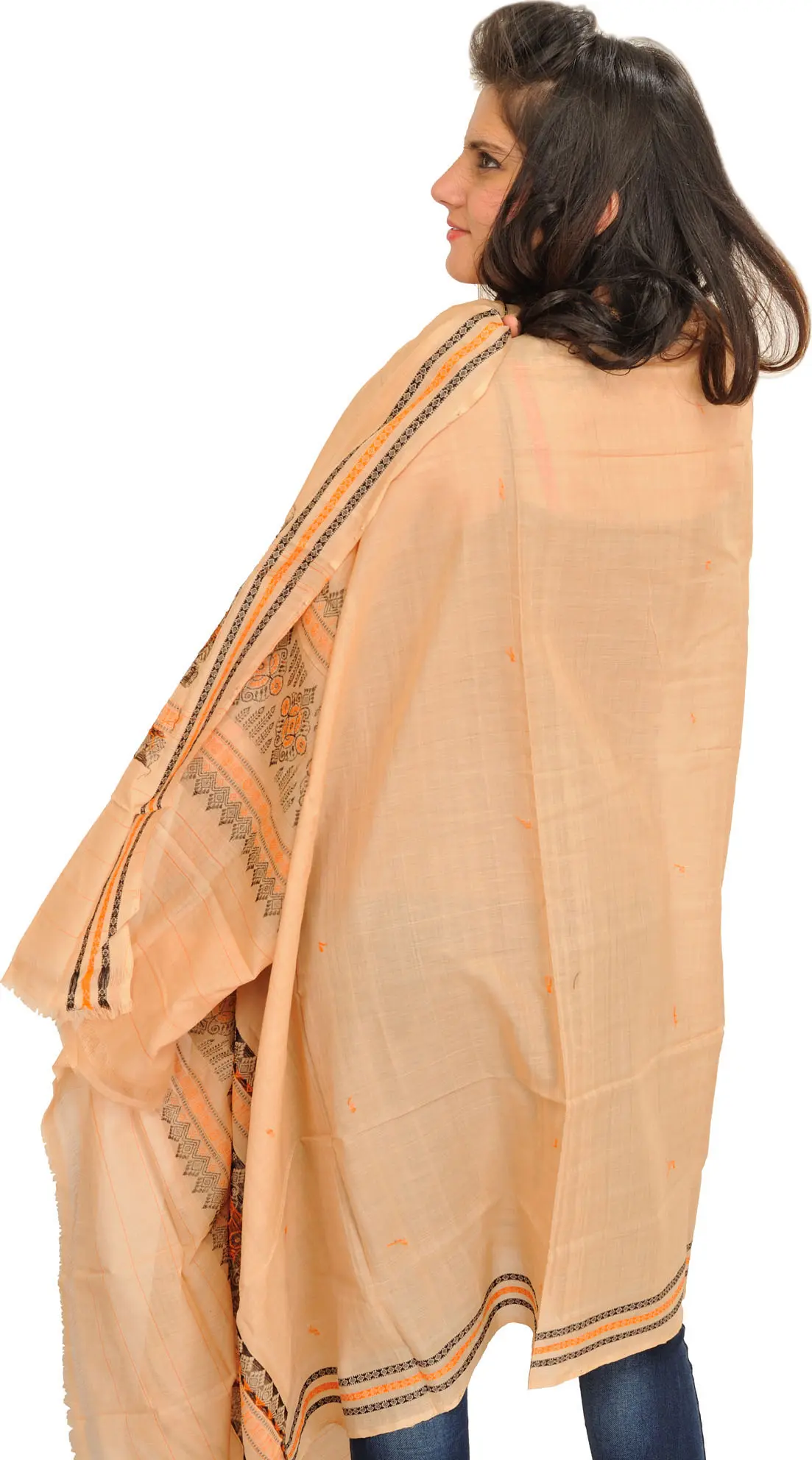 Bomkai Saree from Orissa with Hand-woven Dancing Girls on Anchal and Temple Border