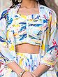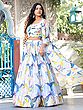 This piece is meticulously crafted from high-quality georgette. The lehenga features a flowing silhouette that is both elegant and comfortable. The choli, perfectly coordinated with the lehenga's design, provides a modern and chic look. Adding an extra layer of sophistication, the matching shrug completes the ensemble, lending a touch of grace and versatility. Whether you're dancing the night away or mingling with guests, this outfit will keep you feeling poised and stylish. The lightweight fabric makes it easy to wear for extended periods, allowing you to focus on enjoying the celebration.