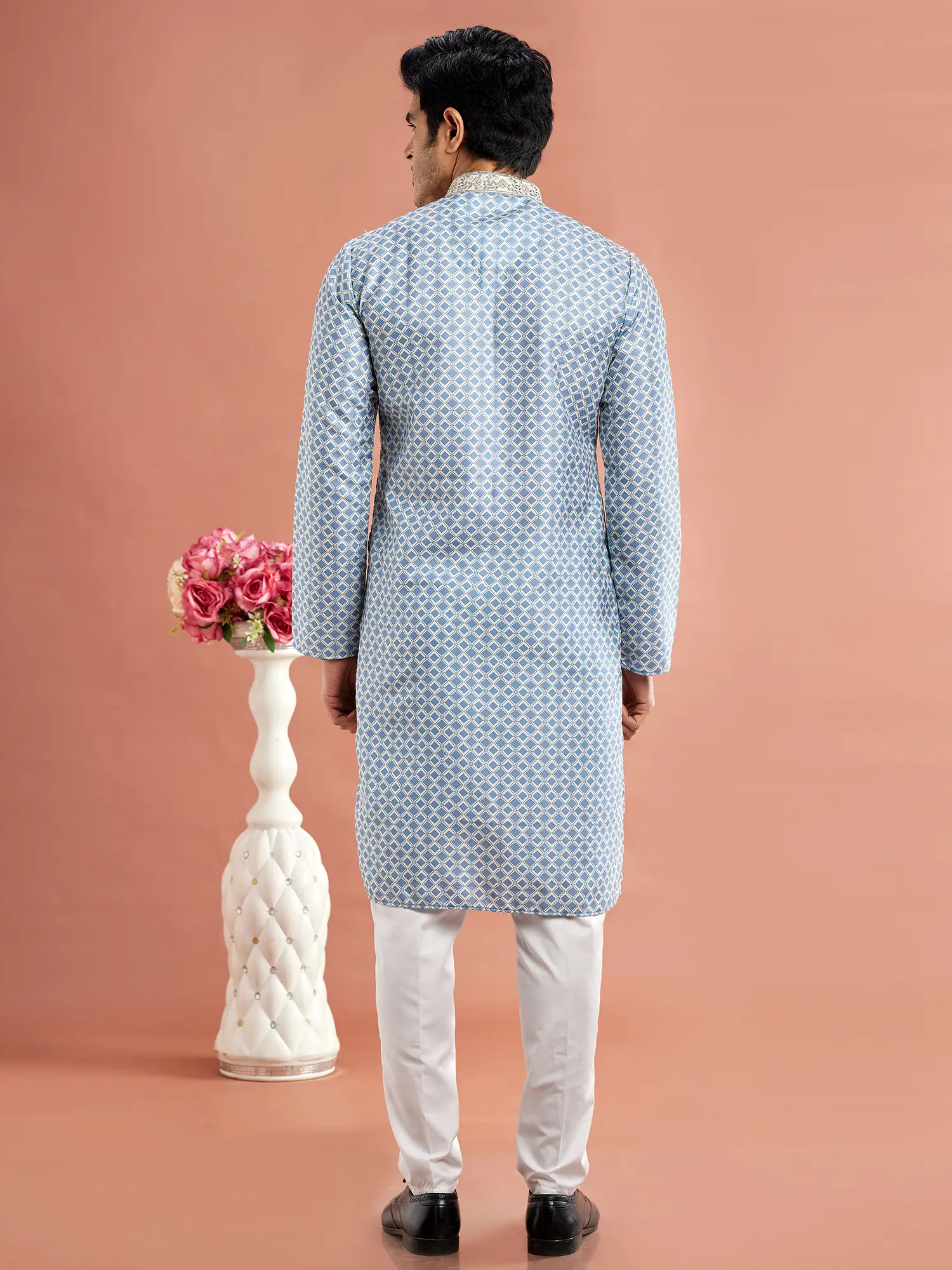 Jacquard Silk Brocade Floral Print All Over Straight Festive Wear Kurta Pajama Set