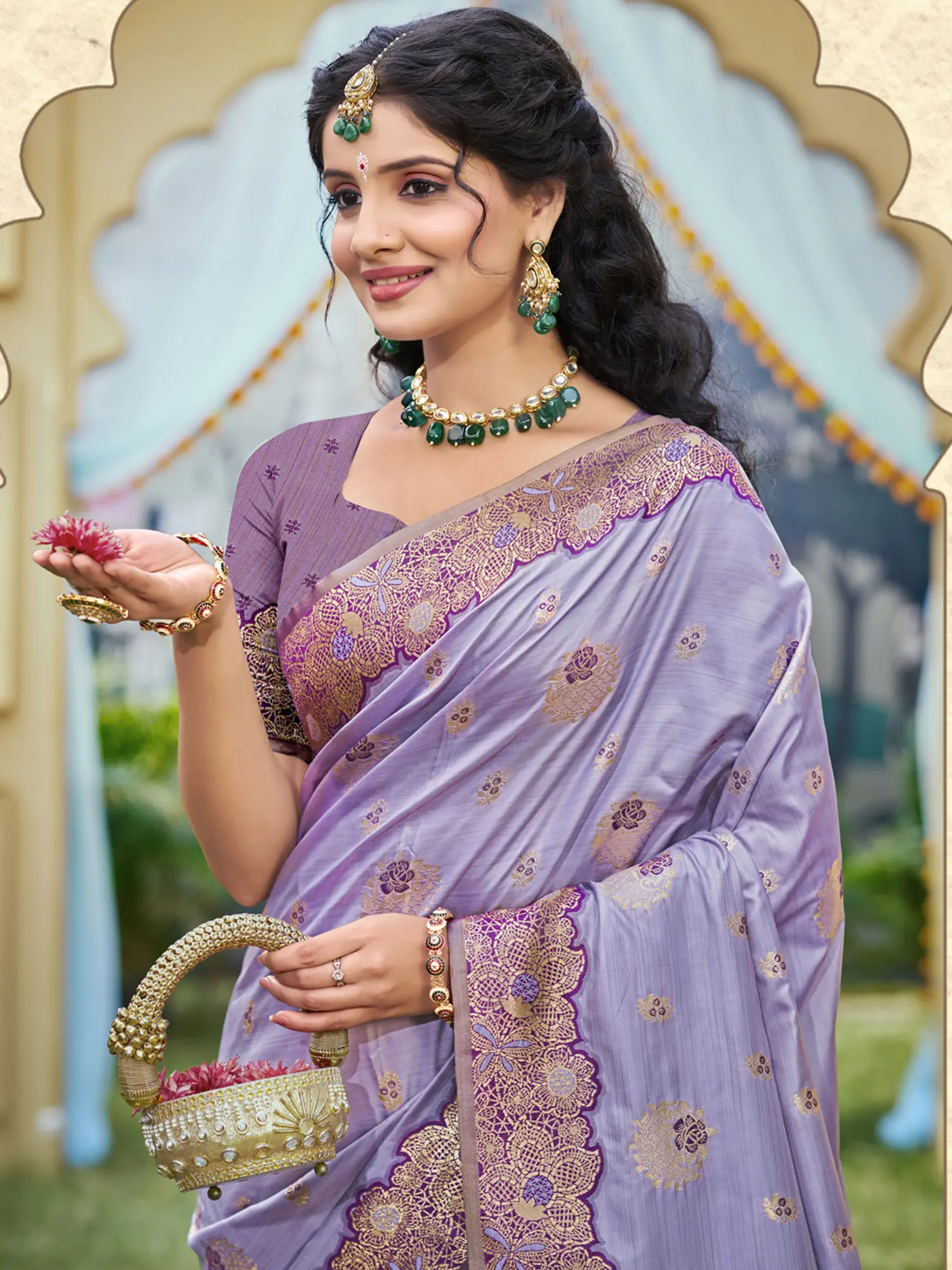 Redwood Shimmering Saree with Embroidered Flowers All-Over