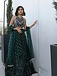 The lehenga itself is a vision of elegance. Pleated to perfection, it cascades from the waist, creating a graceful silhouette. The all-over embellishment of tiny, sparkling sequins and delicate embroidered motifs adds a touch of celestial magic to the garment. The hemline is finished with a contrasting border, further enhancing its visual appeal and adding a polished touch. This lehenga is more than just clothing; it's a wearable work of art, perfect for making a statement at weddings, festive gatherings, or glamorous parties.