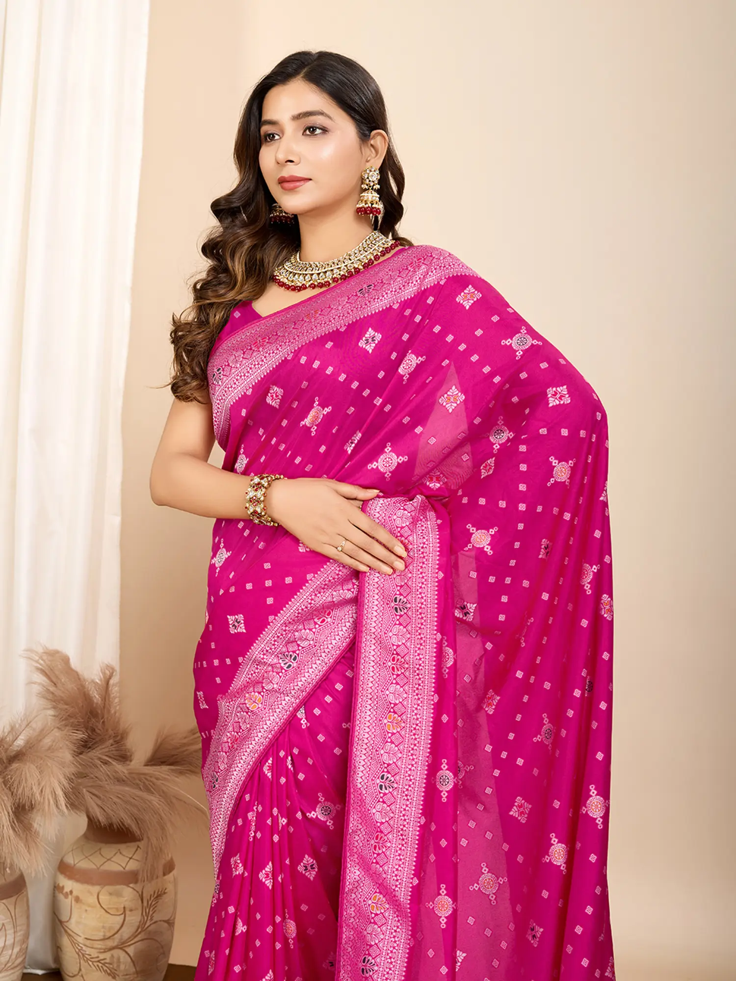 This Muslin Dola Silk saree is designed for the modern woman who appreciates timeless style and impeccable quality. Its versatility makes it the perfect choice for a wide range of events, from festive celebrations and weddings to formal gatherings and special occasions. The luxurious fabric and intricate weave ensure you make a memorable statement, exuding grace and confidence. Drape it in a traditional style or experiment with contemporary pleating to express your unique fashion sense. The subtle yet striking color palette ensures it pairs beautifully with a variety of accessories, allowing you to personalize your look.