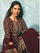 Sharara suit is one of the must-haves from a long list of Indian ethnic women’s wear. Its style and colors make sharara suit the ideal pick for any grand occasion. The well-established pairing of maroon and golden is applied to the stylish georgette designer Sharara salwar suit. The peplum Kurti is heavily embroidered with shimmering golden threads and bits of sequin add shine to the stitching. The flares of the sharara pants bring more volume to this Salwar suit which comes with a matching dupatta to complete your look for any big day.