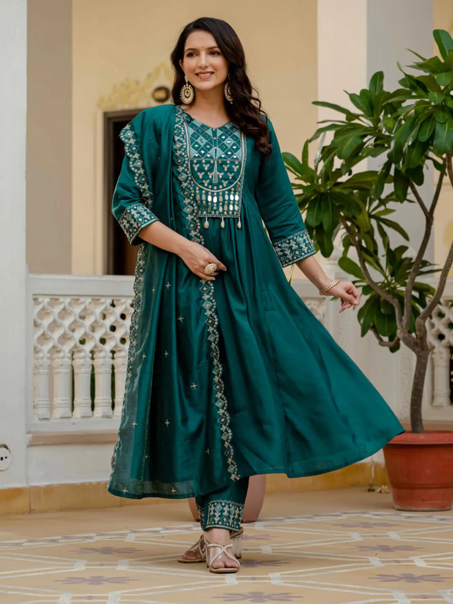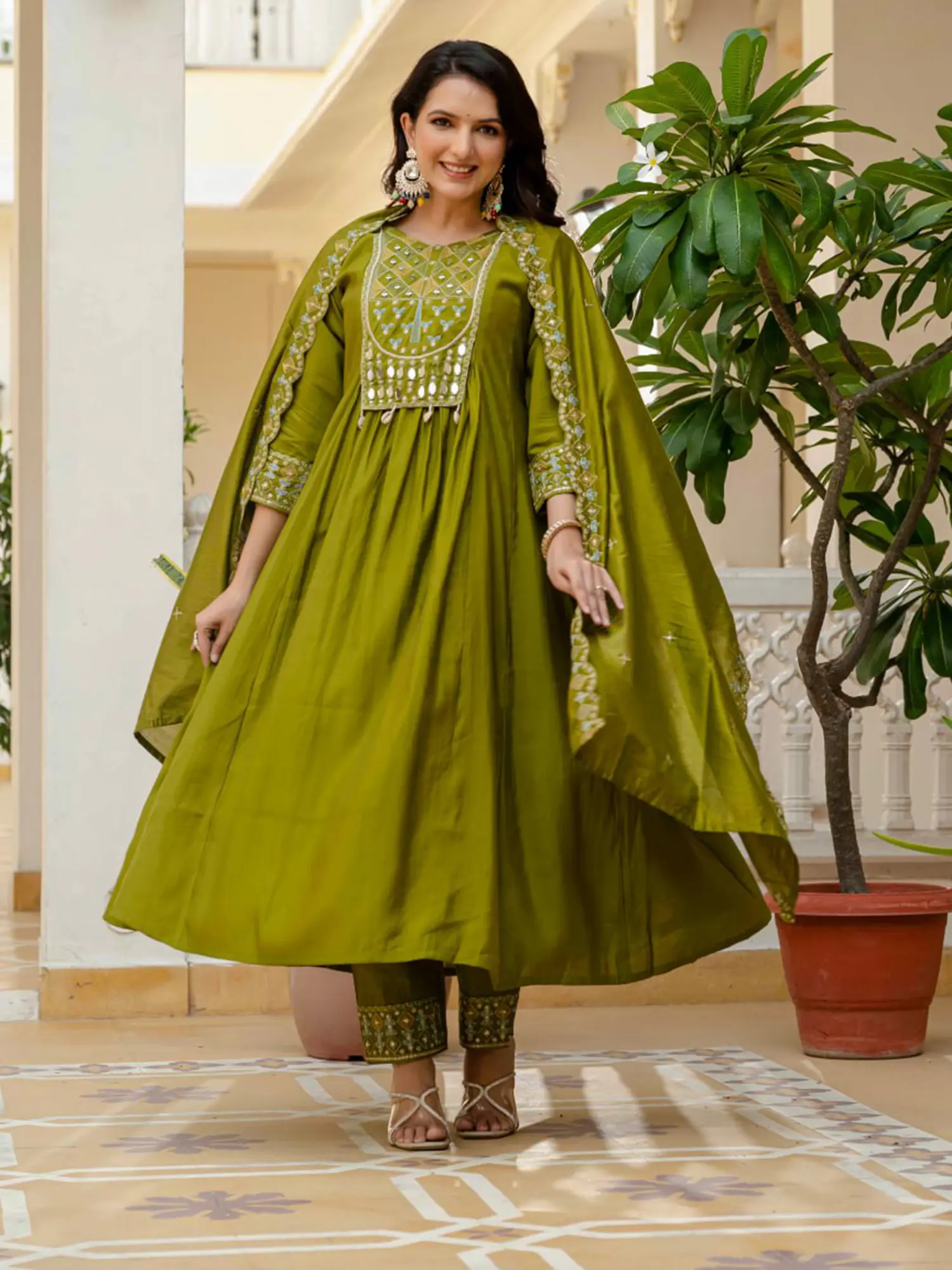 This style draws inspiration from the timeless elegance of traditional Indian wear, reimagined for the contemporary connoisseur. The Anarkali, historically associated with royalty and celebration, brings a sense of grandeur and festivity to any occasion. The use of vibrant embroidery and mirroring reflects a rich cultural tapestry, celebrating heritage with a modern sensibility.