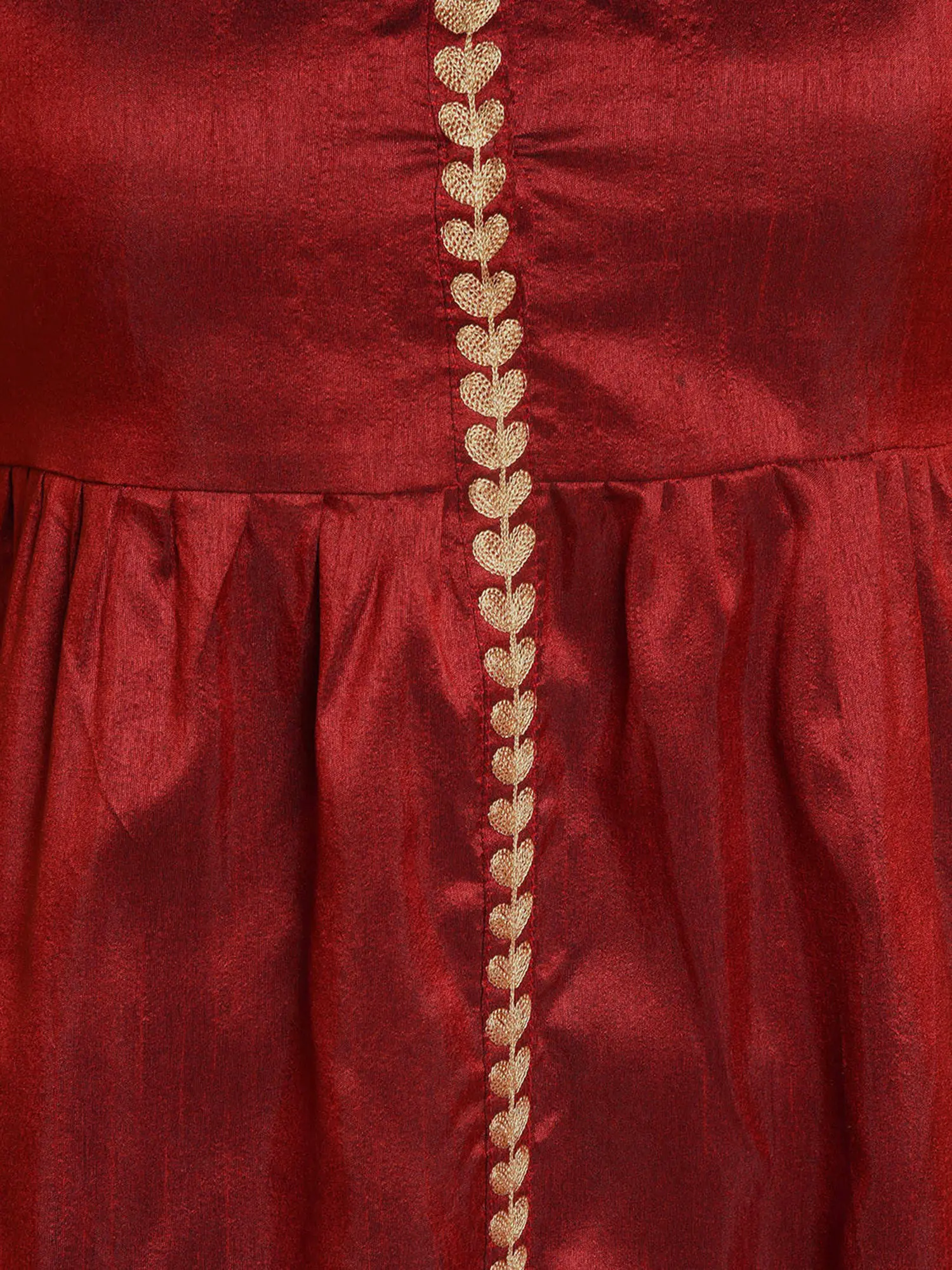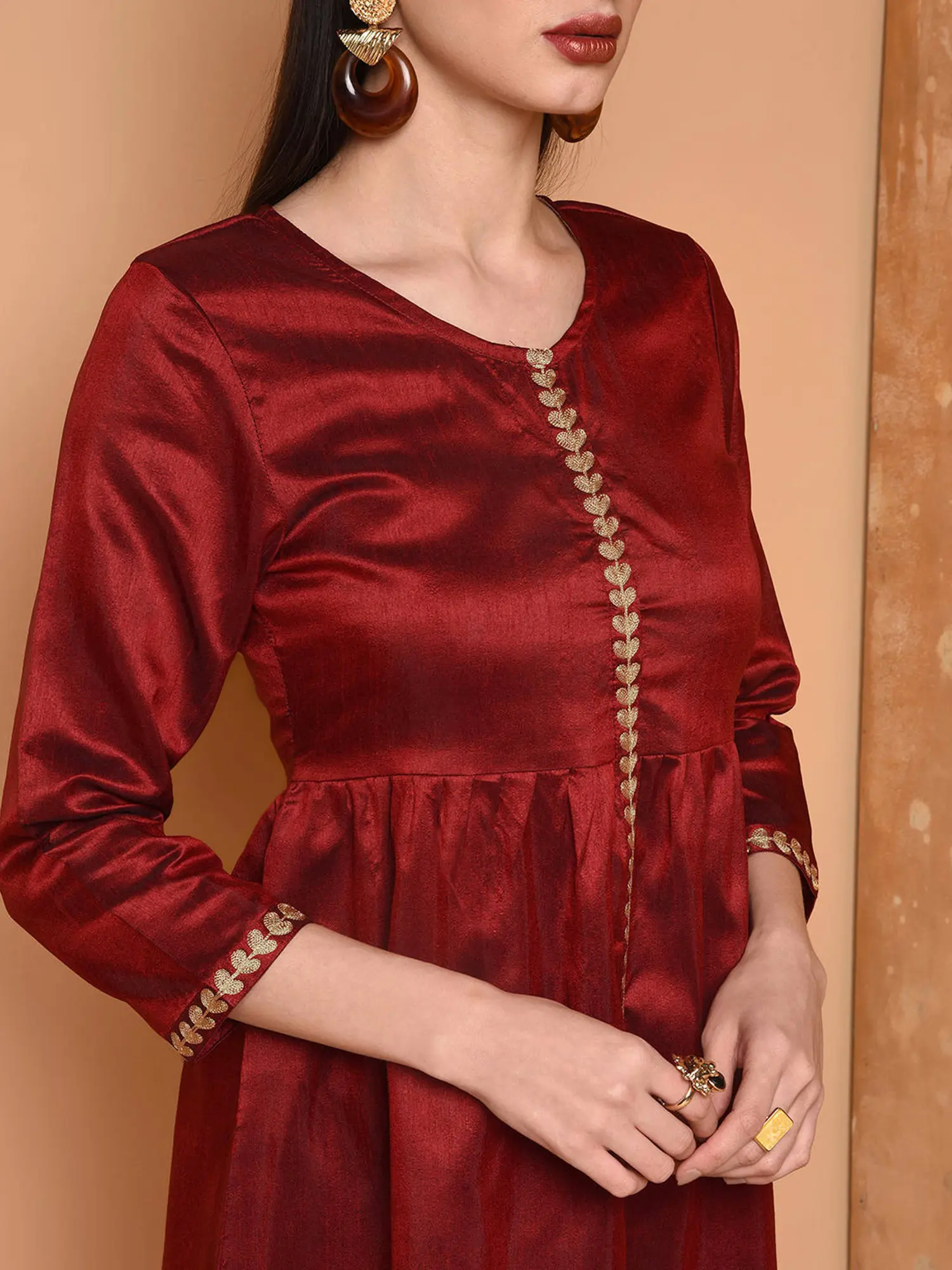Maroon Velvet Kurti Sharara Set With Floral Embroidery And Chanderi Dupatta For Wedding Occasions