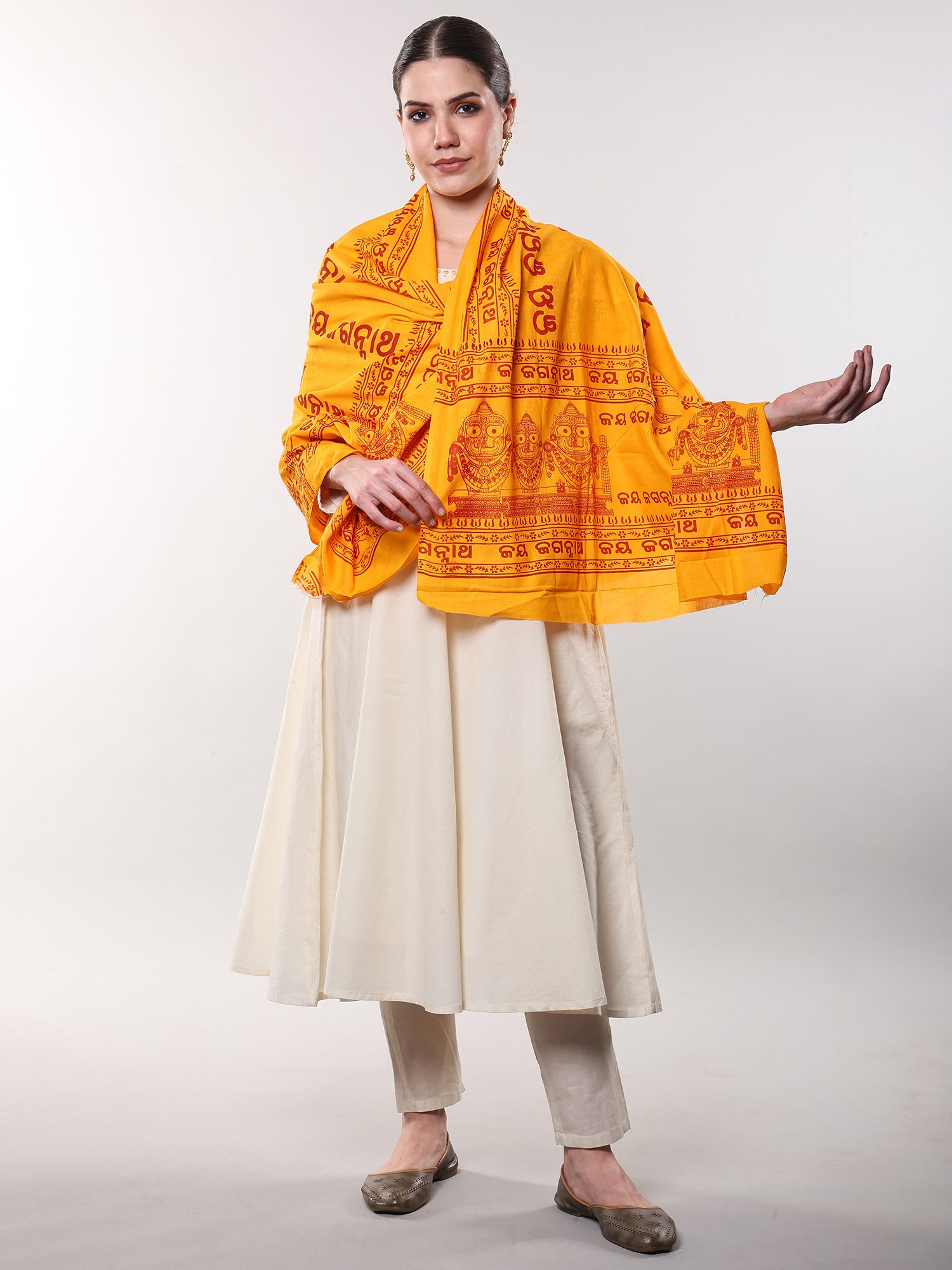 Hare Ram Hare Krishna Prayer Shawl from Banaras | Poly Cotton Religious Clothes